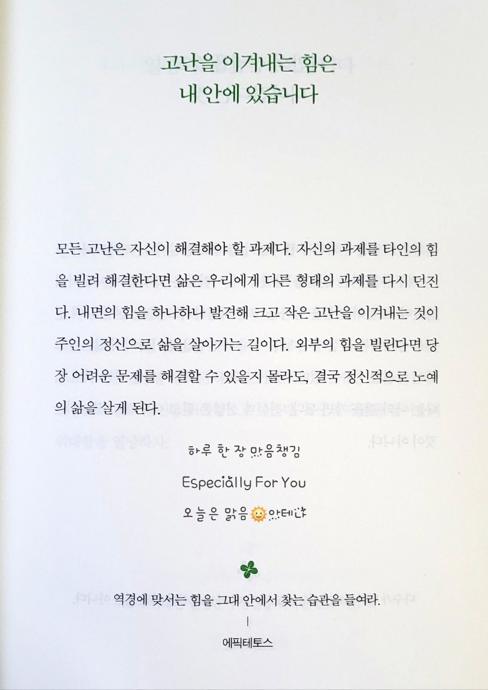 매일 인상 깊은 글귀들을 골라서 일력을 오픈톡방에 많은사람들과 보고 싶어서 올리고 있다.